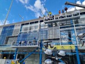Sistema de fachadas en laminan microperforada y ACM, en toda la variedad de diseños y colores estos revestimientos
